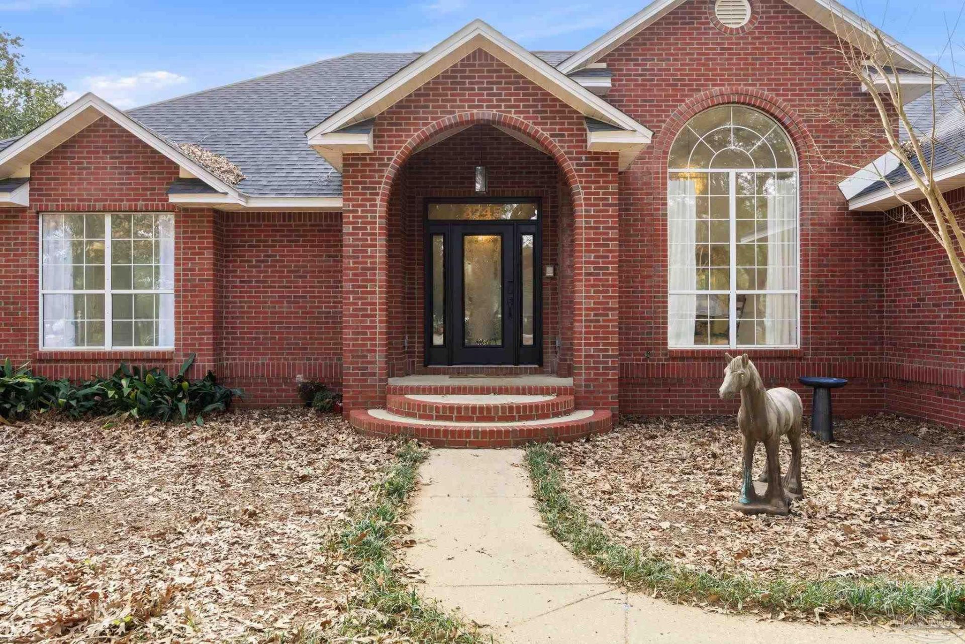 OPEN HOUSE SATURDAY APRIL 25 FROM 10 TO 12. KITCHEN COUNTERTOPS HAVE JUST BEEN REPLACED WITH QUARTZ. NEW GARAGE DOORS. Situated on a generous 1.8-acre corner lot with no HOA, this beautiful brick home in Pace offers exceptional privacy, and plenty of room to spread out. Mature shade trees surround the property, and the BRAND NEW privacy fence make for a truly relaxing outdoor space. Inside, the home features a split floor plan with four bedrooms, three and a half bathrooms, and a spacious bonus room. The foyer boasts beautiful wood French doors that open into the spacious living room. The kitchen offers plenty of stained wood cabinets, stainless...read more
